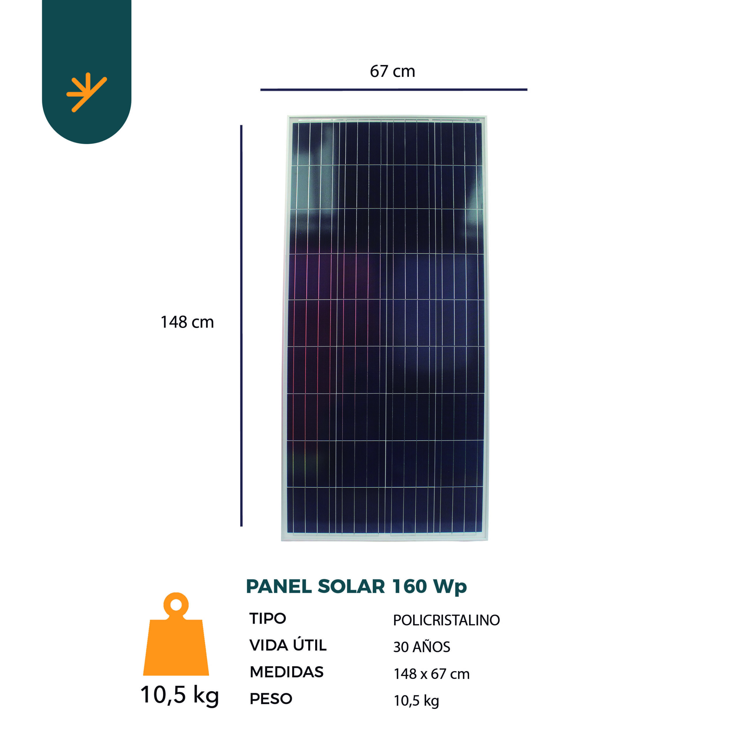 - 1 Panel Solar de 160W policristalino con vida útil de 30 años