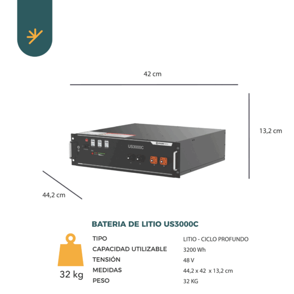 - 1 Batería Pylontech US3000C: Capacidad de almacenamiento masiva de 3 kWh útiles.