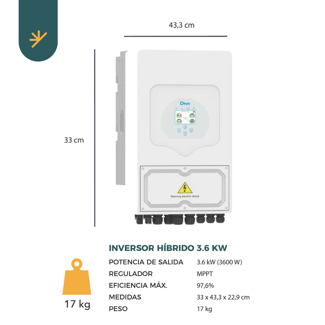 - 1 Inversor Híbrido Deye Monofásico de 3.6 kW