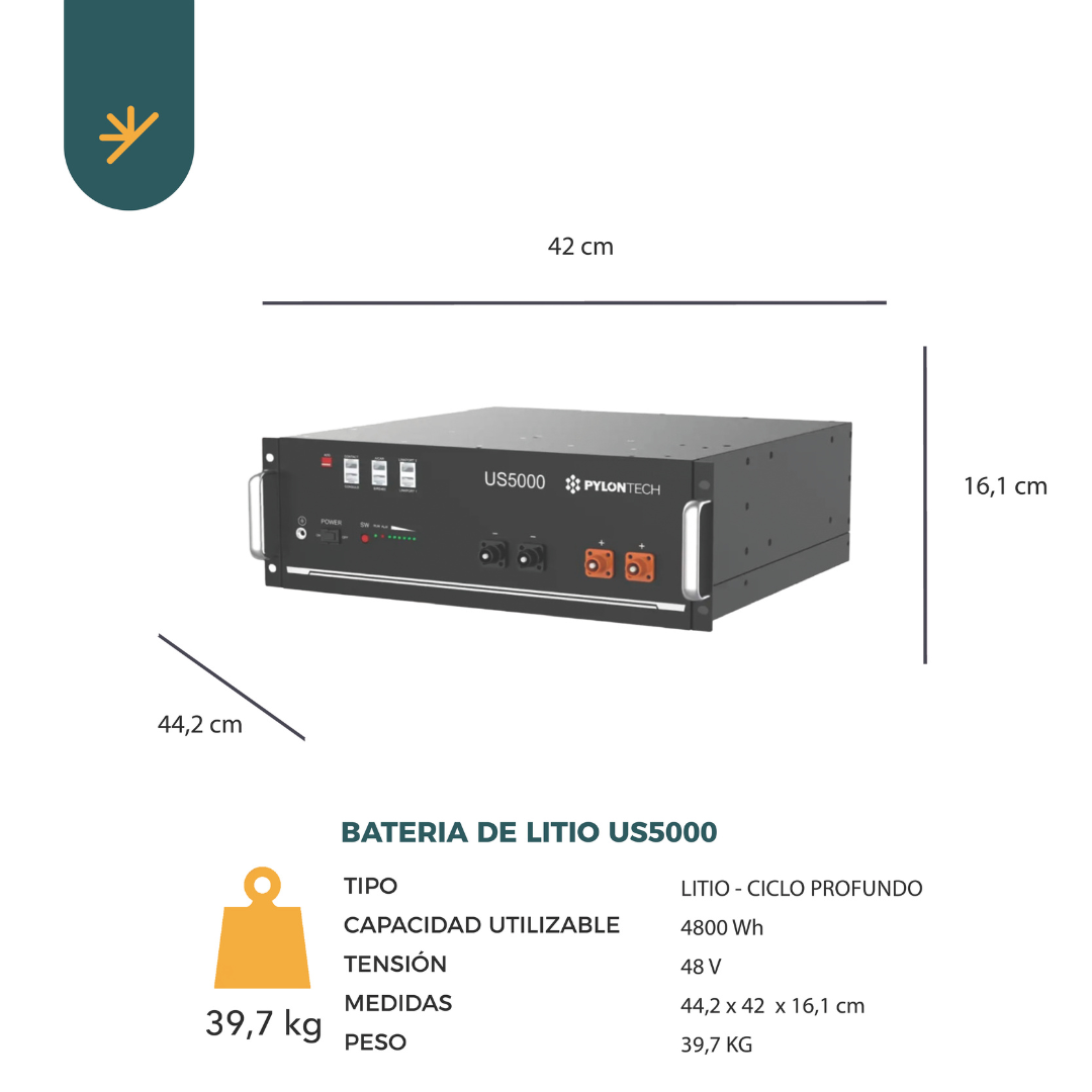 - 1 Batería Pylontech US5000: Capacidad de almacenamiento masiva de 5 kWh útiles.