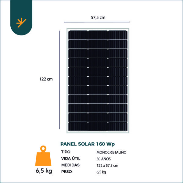 Panel solar de 160W monocristalino, pensado para quienes necesitan energía en lugares sin red eléctrica. Es una excelente opción para usar en casas, galpones, cabañas, motorhomes o zonas rurales. Tiene la potencia justa para alimentar luces LED, bombas de agua chicas, heladeras o cargadores, según el sistema que armes. Además, funciona con reguladores PWM o MPPT y se puede usar en sistemas de 12V. Su estructura es resistente y rinde bien incluso en días nublados.