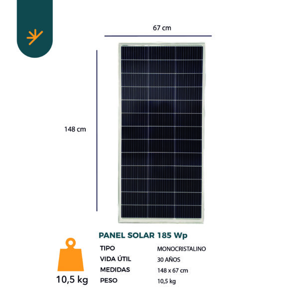 - Potencia Nominal: 185 Wp