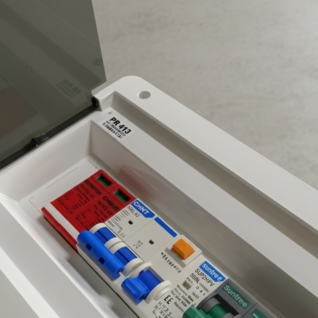 - Protector de descargas atmosféricas CA: Protege la salida del inversor frente a picos de tensión y descargas.